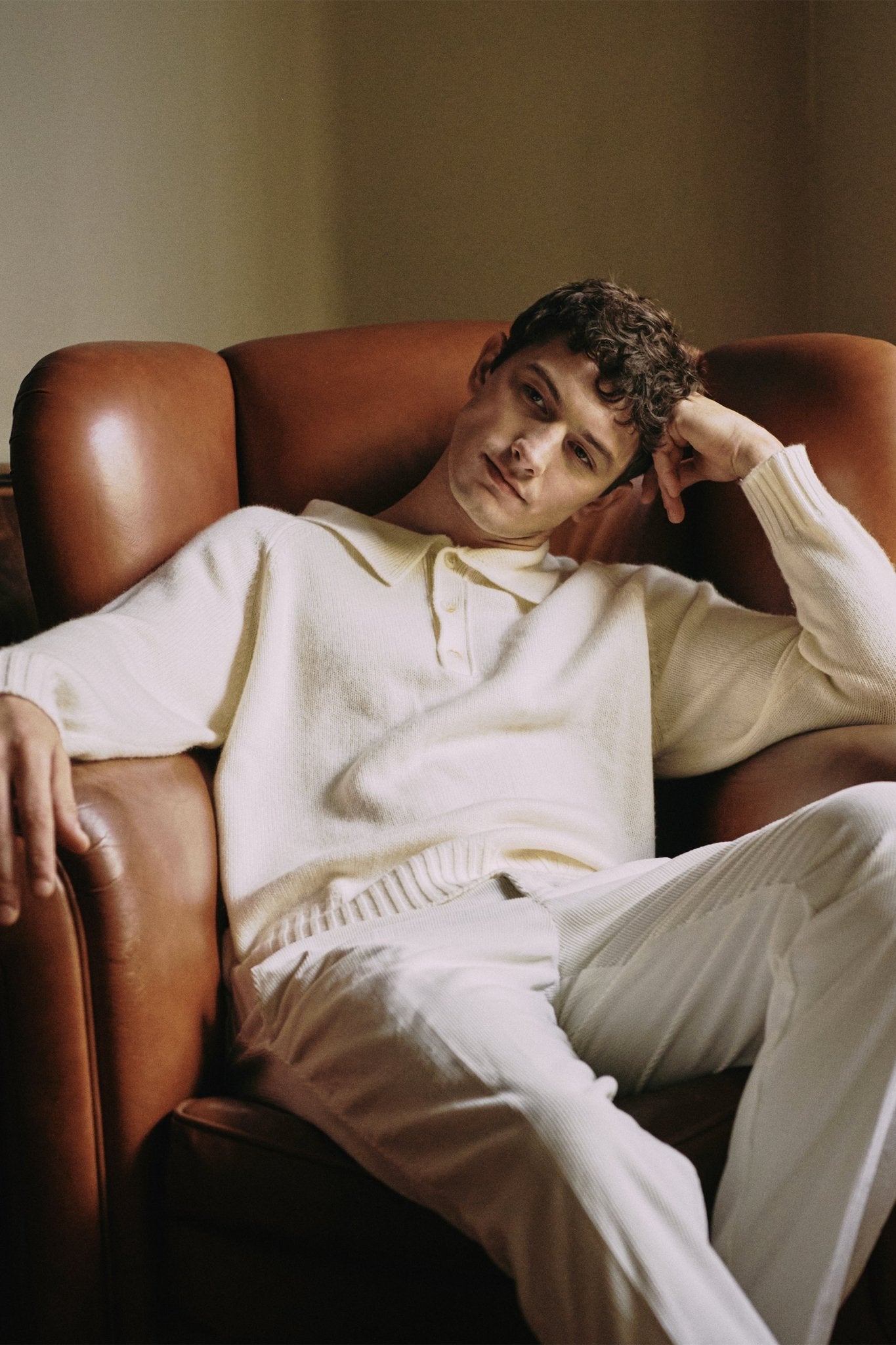 Plain polo shirt with raglan shoulders and three-button placket. 5 gauge - 3 ply.