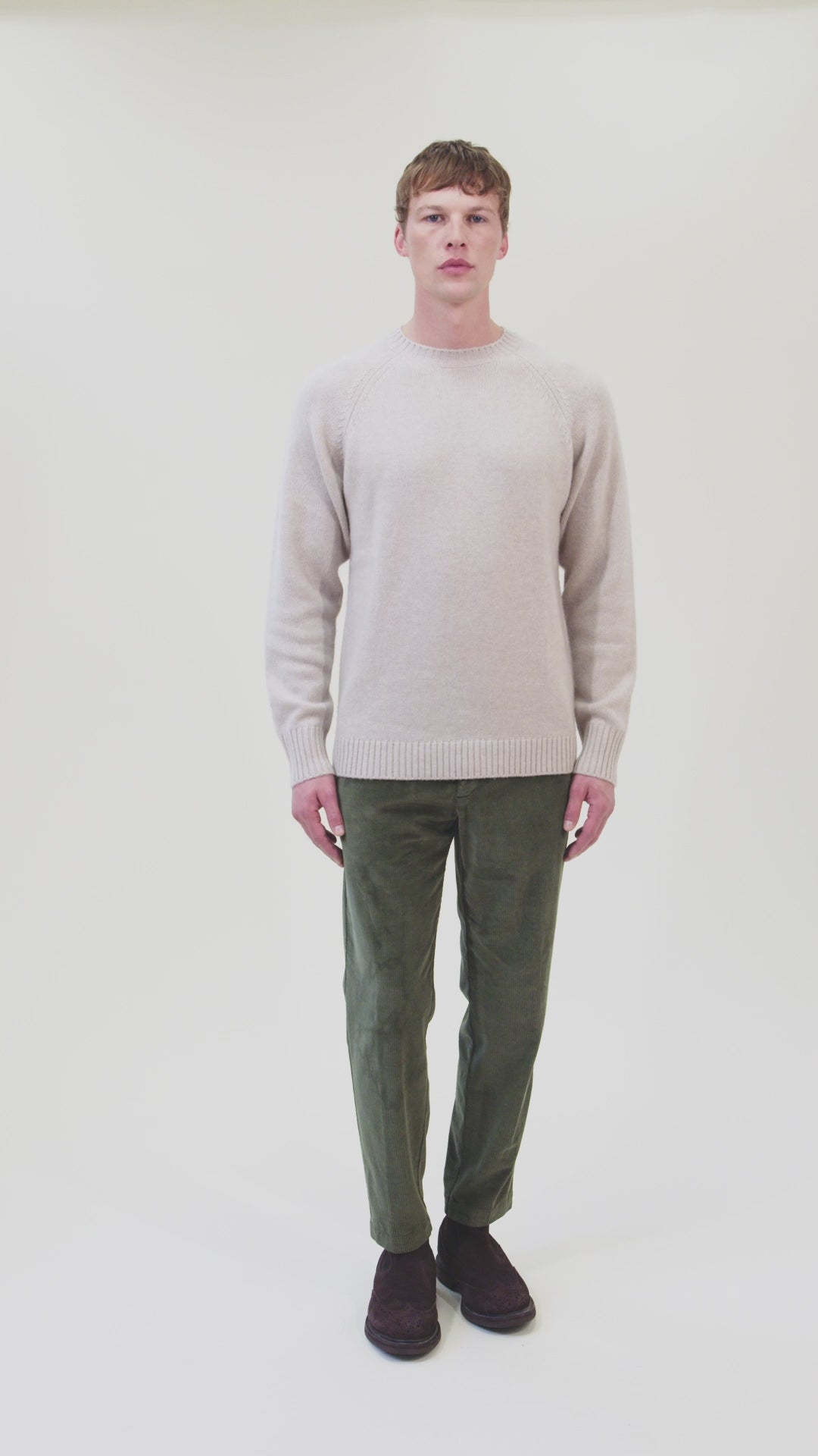 Crew neck sweater with raglan shoulder. 5 gauge - 3 ply.