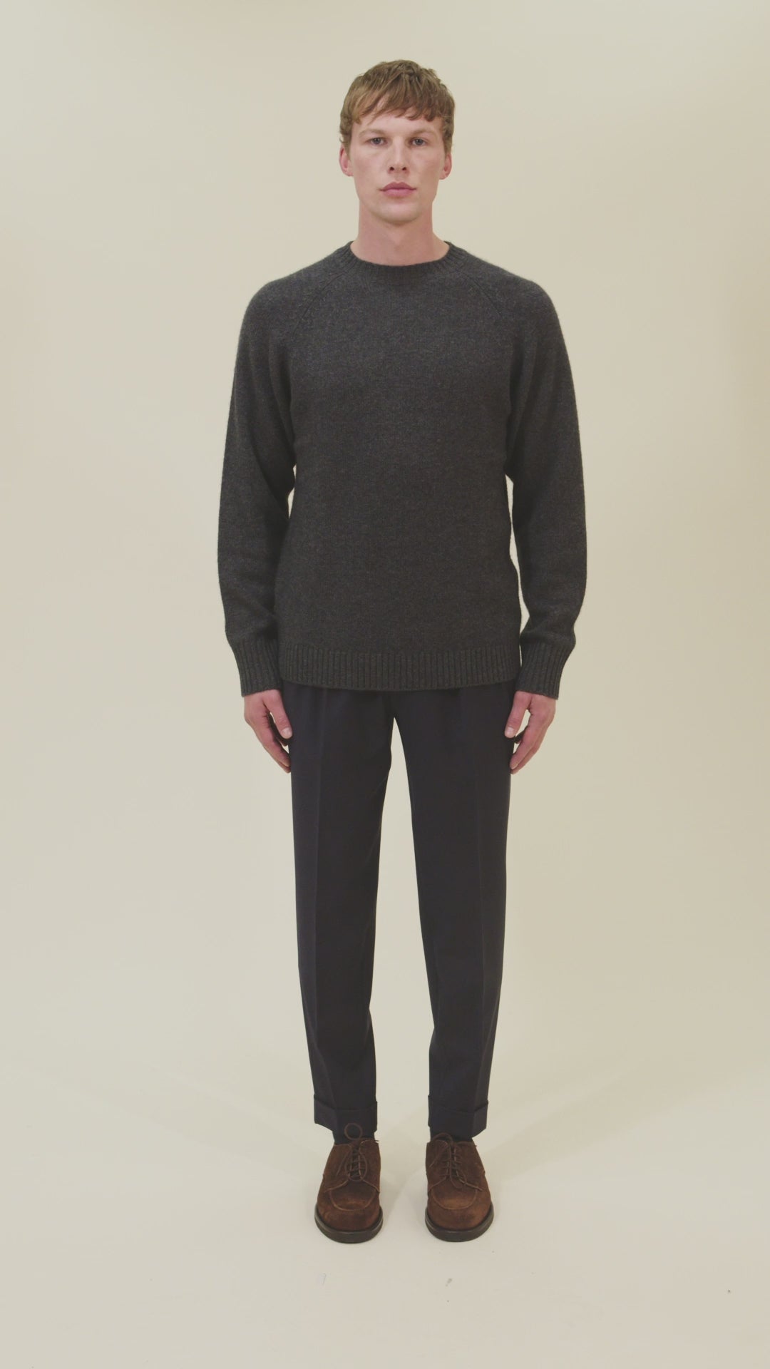 Crew neck sweater with raglan shoulder. 5 gauge - 3 ply.