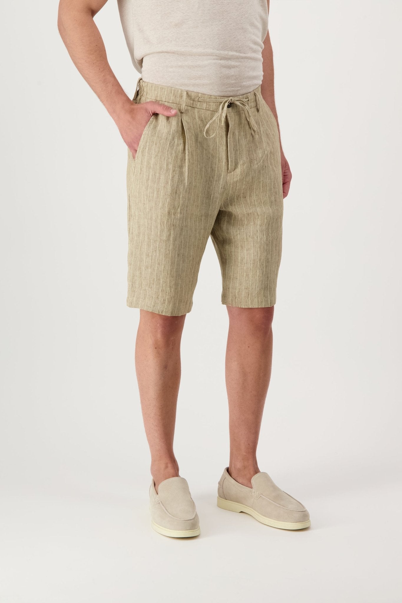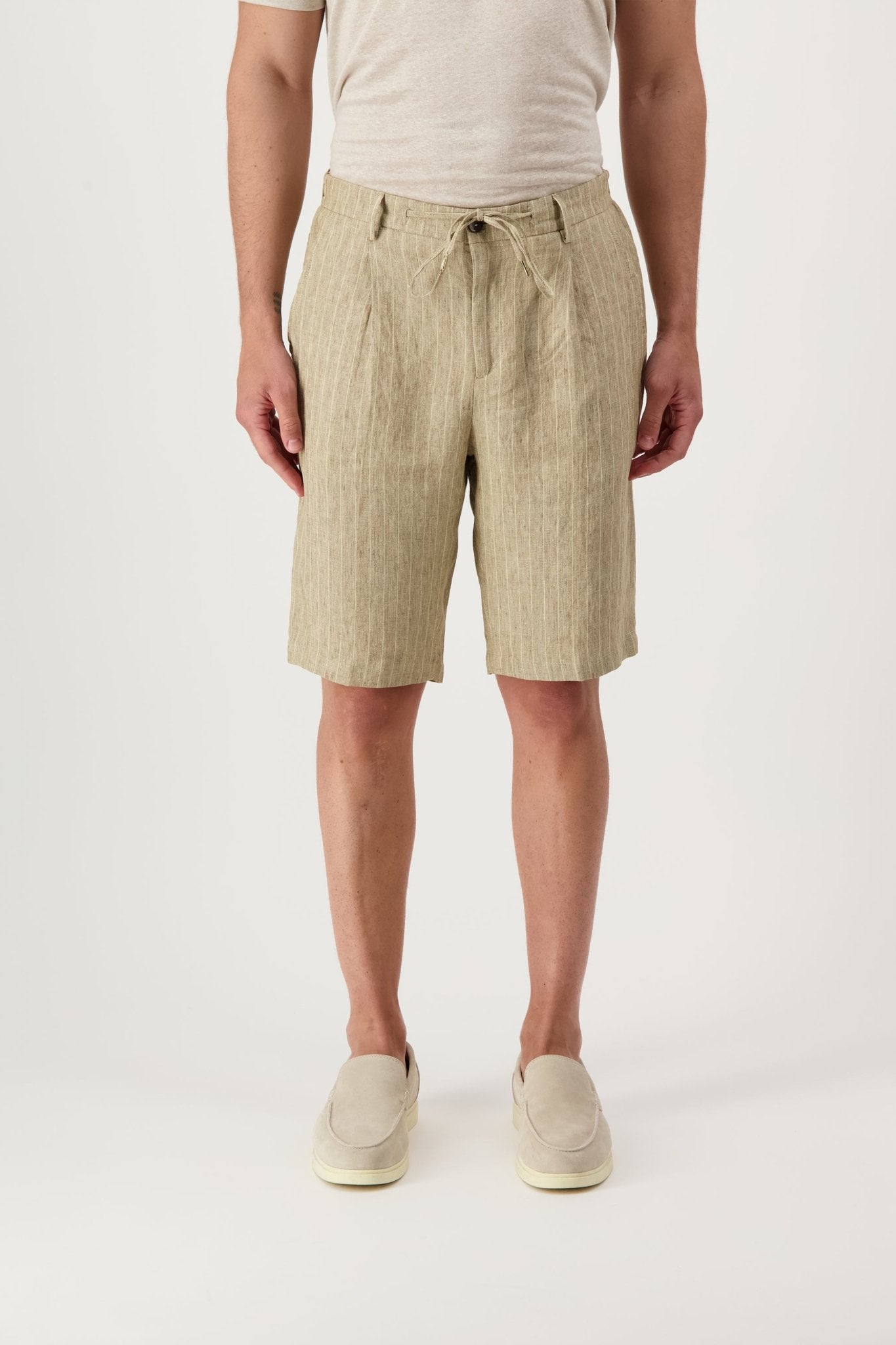 Linen shorts with slant pockets and zip closure. The model is 188 cm tall and wears a size 50.