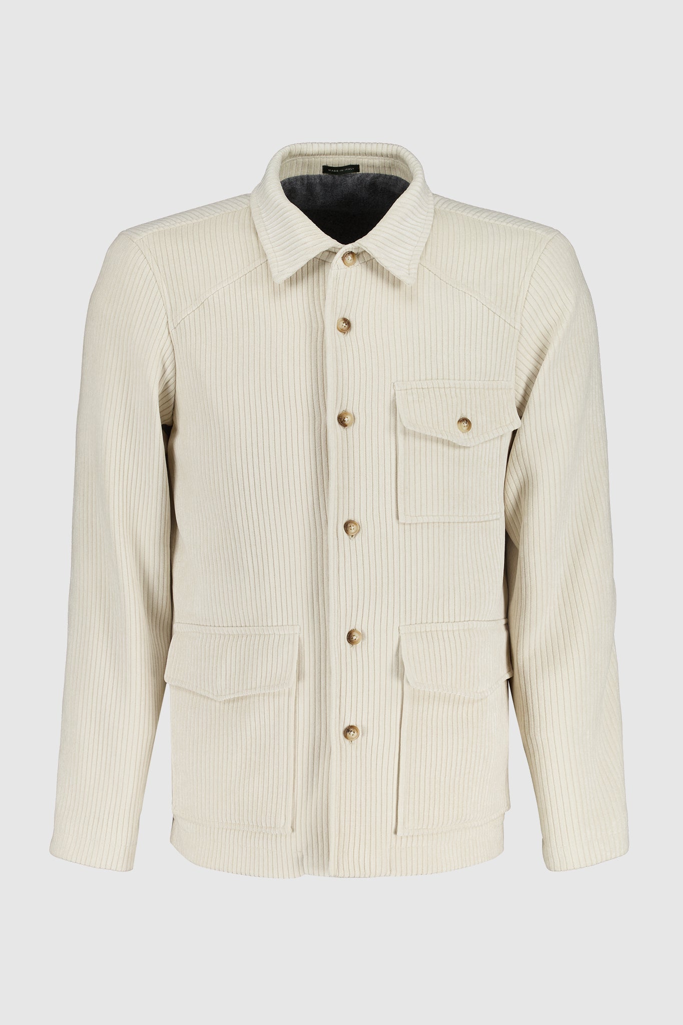 Made in Italy. Double-rib jacket, with a simple cut and sophisticated character.
