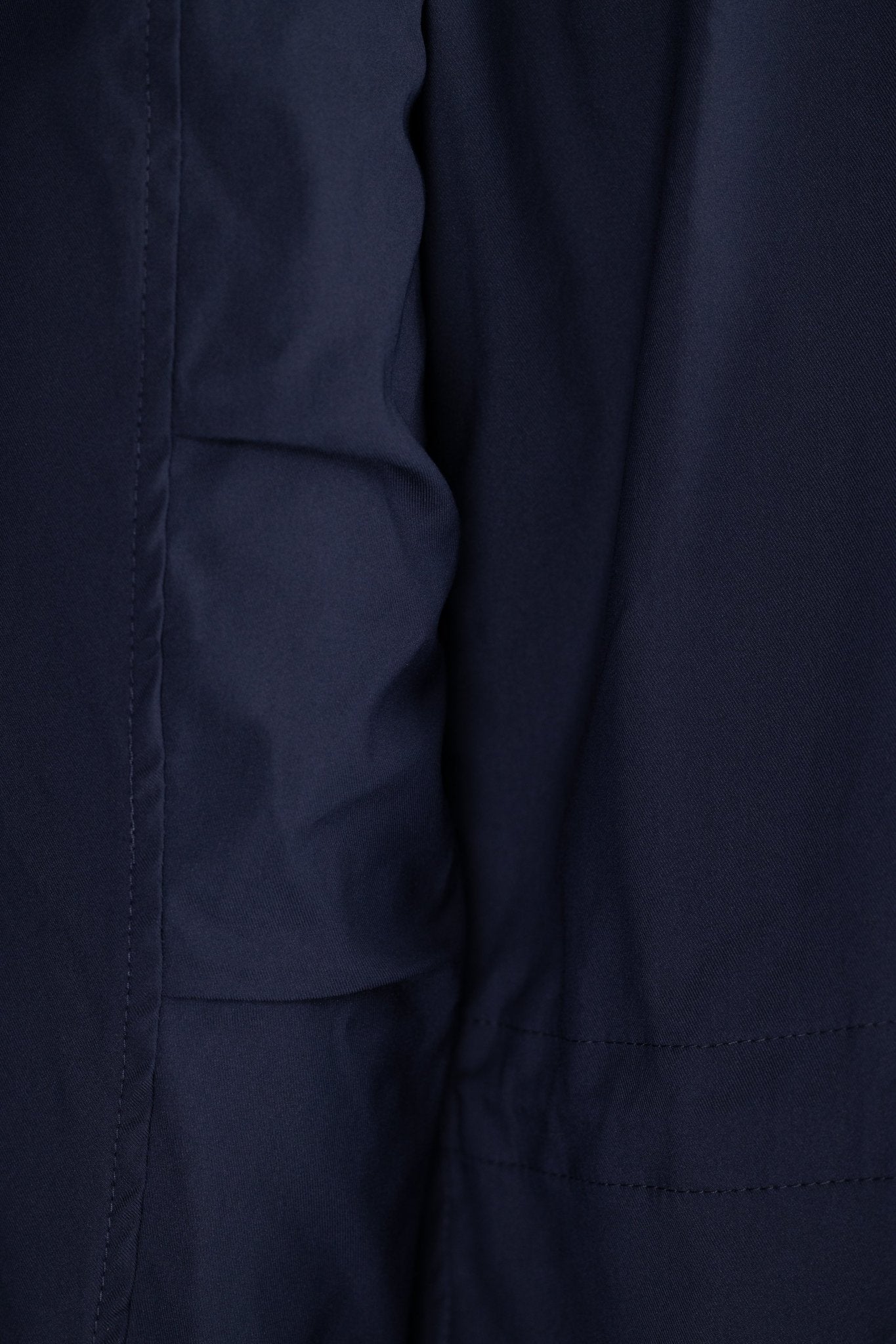 Hood hidden in the collar, four front pockets with flap, front closure covered with zip and press studs, shoulders with toggles, regular fit